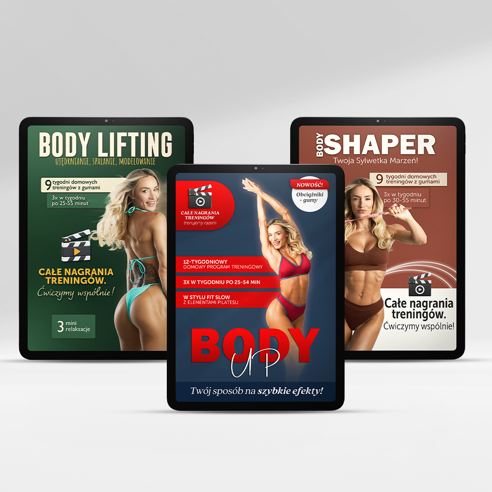 W skład tego zestawu e-booków wchodzą trzy programy treningowe: Body Shaper, Body Lifting i Body Up. Najnowszy program treningowy Body Up trwa 12 tygodni, natomiast pozostałe czyli Body Shaper oraz Body Lifting trwają 9 tygodni – wszystkie te programy razem tworzą serie treningową BODY, dzięki której Twoje marzenia o lepszej sylwetce staną się rzeczywistością.
