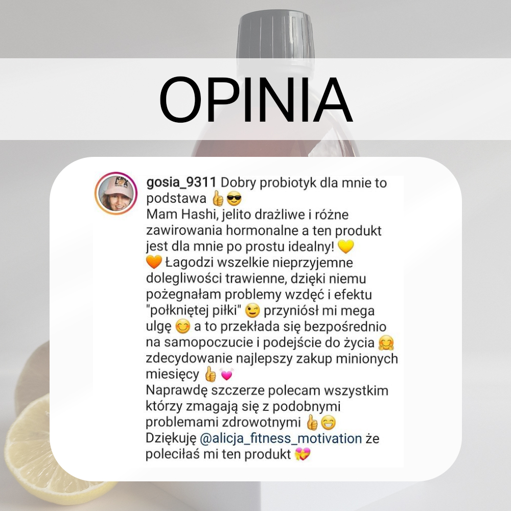 Uwagi: Kwasowość probiotyku oraz mogące powstawać: osad na dnie butelki, biały nalot na powierzchni, gazy są naturalnym efektem procesu fermentacji.